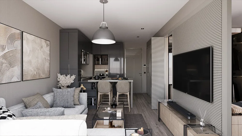 1+1 ve 2+1 daire tipleri; maksimum kullanım alanı, doğal ışık ve estetik detaylar gözetilerek tasarlanmıştır. Hem bireysel yaşam hem de yatırım amacıyla ideal planlamaya sahiptir.