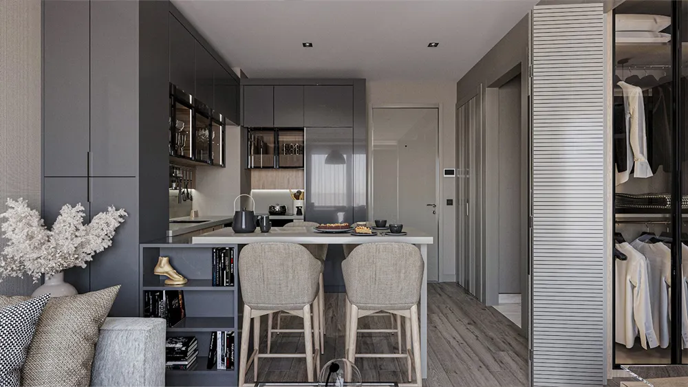 Yüksek kaliteli malzemelerle donatılan mutfak, banyo, salon ve yatak odaları; konforu, zarafeti ve huzuru aynı anda yaşatır.